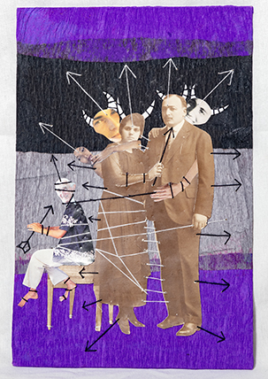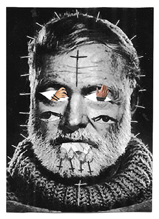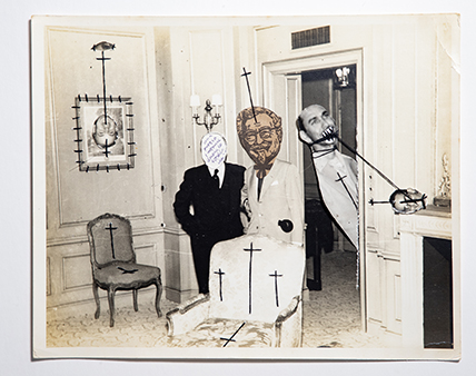 Endearing scenes become grotesque images in which the portrayed – even children – lose their faces or are characterised with devilish traits like long ears, horns or claws. Far from dealing with themes like the loss of identity, or extinctions, the faces ripped out of these characters appear in macabre ways on other parts of the composition.